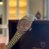 Diameter 25 mm. Thickness 9.5 mm. Stainless steel case and bracelet. Smooth bezel. Pink dial with Arabic numerals. Luminous hands and markers. Sapphire crystal. Automatic movement. Solid case back with Tudor emblem. Stainless steel deployant clasp with Tudor emblem.