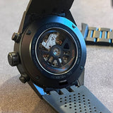 Diameter 45mm. Ceramic case. Automatic movement. Skeleton dial. Fixed ceramic bezel. Waterproof 100 meters. Sapphire crystal. original tag folding clasp. Transparent caseback.