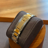Diameter 40 mm. Stainless steel case. Graduated bezel in 18Kt yellow gold. Rolex crown. Mother of pearl dial with Roman numerals. Gold hands and numerals. Sapphire crystal. Automatic movement. Caliber 4130. Power reserve of 72 hours. Solid stainless steel case back. Stainless steel and 18Kt yellow gold bracelet. Stainless steel and 18Kt yellow gold folding clasp with Rolex emblem.