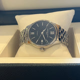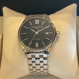 Diameter 38 mm. Wrist circumference without the 4 additional links of 16.7 cm. Case and bracelet in stainless steel. Smooth steel bezel. Black dial with Roman numerals. Sapphire crystal. Automatic movement. Solid steel case back with Frédérique Constant emblem. Double folding clasp in steel with Frédérique Constant emblem.