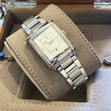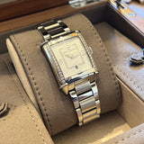 Diameter 28.20 * 27.86mm. Case and bracelet in stainless steel. Bezel set with 30 diamonds. White dial with 42 diamonds and Arabic numerals. Sapphire crystal. Automatic movement. Caliber GP02700-0003. Transparent case back. Stainless steel double folding clasp.