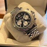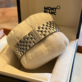 Diameter 41 mm. Stainless steel case. Graduated rotating bezel in steel. Black dial without numerals. Luminous hands and markers. Sapphire crystal. Automatic chronograph movement. Solid steel case back with Montblanc emblem. Replacement steel bracelet, non-original. Replacement double folding clasp in steel, non-original.