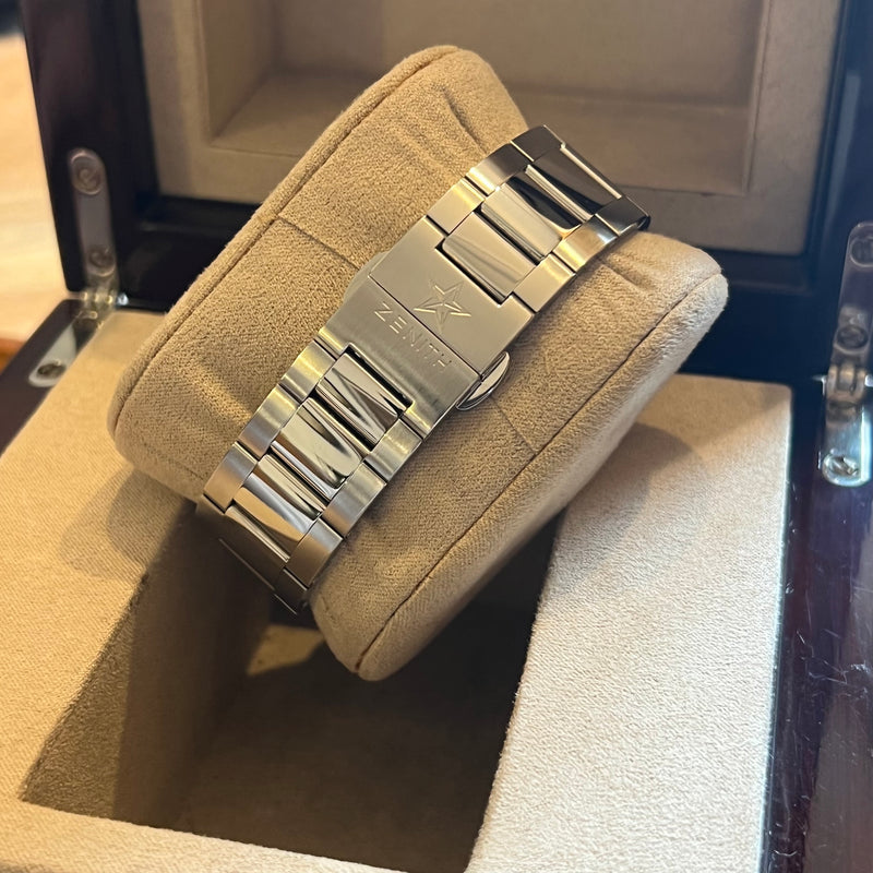 Contents: Watch, box, outer box, user manual, Zenith tag, 4 additional links, warranty card.