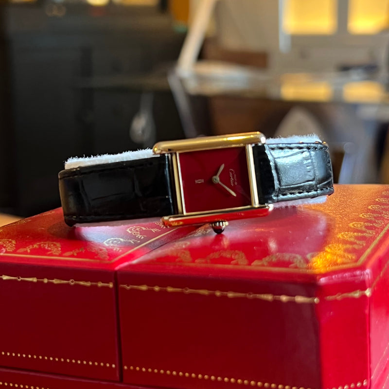 Cartier Tank Must Bordeaux Dial Vermeil Case Full Set