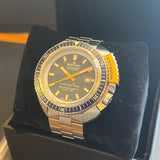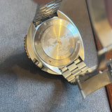 Diameter 46 mm. Wrist circumference without the additional links 16.8 cm. Case and bracelet in stainless steel. Graduated blue bezel. Blue dial without numerals. Luminous hands and indexes. Sapphire crystal. Automatic movement. Solid stainless steel case back with Edox emblem. Stainless steel folding clasp with Edox emblem.