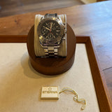 Functions: Hours, minutes, chronograph, date display at 3 o'clock.