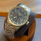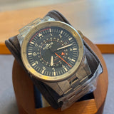 Functions: Hours, minutes, central seconds, GMT, date display at 3 o’clock.