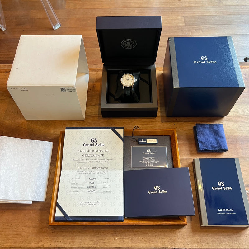 Contents: Watch, box, outer box, user manual, Grand Seiko microfiber cloth, certificate of authenticity, Grand Seiko tag, warranty card.