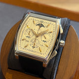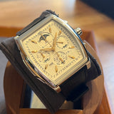 Functions: Hours, minutes, chronograph, moon phase display at 12 o’clock, day, month, date and year display.