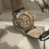 Diameter 40 mm. Stainless steel case. Smooth steel bezel. Green dial with a sub-dial for hours at 12 o’clock featuring Roman numerals. Sapphire crystal. Automatic movement. Transparent case back. Original black leather strap by Louis Erard. Stainless steel double folding clasp with Louis Erard emblem.