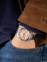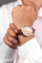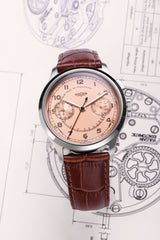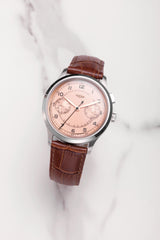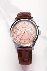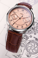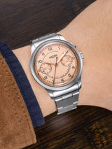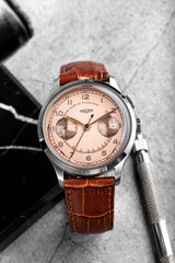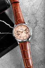 DIAL : Matt Salmon Dial with Black color print and Thick printed Khaki color Arabic numbers