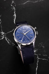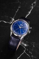 Dial: Blue, applied numerals, hour-markers and dauphine-type hands
