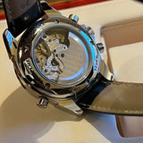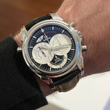 Function: Hours, minutes, small seconds, chronograph, split-seconds hand, date window at 11 o'clock, 30-minute counter, 12-hour counter.