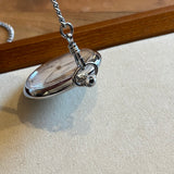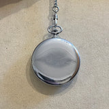 Diameter 48 mm. Stainless steel case. Stainless steel attachment chain. White dial with Arabic numerals. Mechanical movement. Solid stainless steel case back.