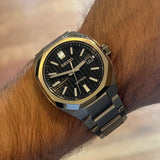 Diameter 40 mm. Wirst size 16 cm. Case and bracelet in Titanium. Smooth Titanium bezel. Textured black dial without numbers. Sapphire crystal. Solar Quartz movement. Full titanium case back with Seiko emblem. Titanium folding clasp with Seiko emblem.