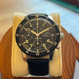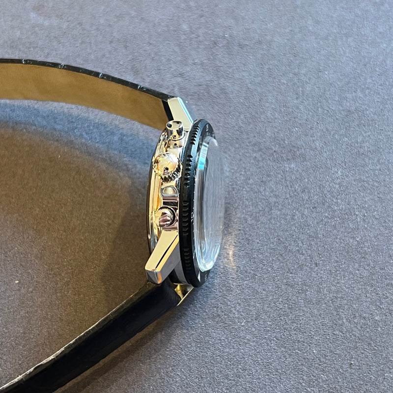 Functions: Hours, minutes, chronograph, day and date display at 3 o'clock.