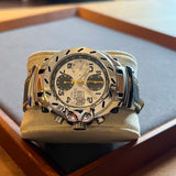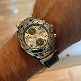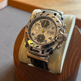 Functions: Hours, minutes, chronograph, date and day display at 3 o'clock.
