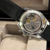 Functions: Hours, minutes, chronograph, power reserve display, open heart.